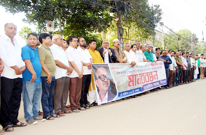 প্রেসক্লাব ফাউন্ডেশনের সাধারণ সম্পাদক ও সিসিক কাউন্সিলর রেজওয়ান আহমদ এবং সিলেট জেলা প্রেসক্লাবের সাধারণ সম্পাদক ও দৈনিক বাংলাদেশ প্রতিদিনের স্টাফ রিপোর্টার শাহ্ দিদার আলম নবেলের পরিচালনায় মানববন্ধনে বক্তব্য রাখেন ও উপস্থিত ছিলেন- আওয়ামী লীগের কেন্দ্রীয় সাংগঠনিক সম্পাদক এডভোকেট মিসবাহ উদ্দিন সিরাজ, সিলেট মহানগর আওয়ামী লীগের সভাপতি বদর উদ্দিন আহমদ কামরান, জেলা আওয়ামী লীগের সাধারণ সম্পাদক শফিকুর রহমান চৌধুরী, সিলেট জেলা প্রেসক্লাবের সভাপতি তাপস দাশ পুরকায়স্থ, প্রেসক্লাব ফাউন্ডেশনের সভাপতি আল আজাদ, জেলা মুক্তিযোদ্ধা সংসদের সাবেক সভাপতি সুব্রত চক্রবর্তী জুয়েল, সুশাসনের জন্য নাগরিক-সুজন সিলেটের সভাপতি ফারুক মাহমুদ চৌধুরী, বাফুফের কার্যনির্বাহী সদস্য ও জেলা ক্রীড়া সংস্থার সাধারণ সম্পাদক মাহি উদ্দিন আহমদ সেলিম, জেলা ক্রীড়া সংস্থার সাবেক সাধারণ সম্পাদক ফেরদৌস চৌধুরী রুহেল, সম্মিলিত নাট্য পরিষদের সভাপতি মিশফাক আহমদ চৌধুরী মিশু, সাধারণ সম্পাদক রজতকান্তি গুপ্ত, সাংস্কৃতিক সংগঠক এনামুল মুনীর, সিলেট জেলা প্রেসক্লাবের সিনিয়র সহ সভাপতি মনিরুজ্জামান মনির, সাবেক সাধারণ সম্পাদক ও দৈনিক যুগান্তরের ব্যুরো ইনচার্জ সংগ্রাম সিংহ, টেলিভিশন সাংবাদিক ইউনিয়নের সাবেক সাধারণ সম্পাদক শাহ মুজিবুর রহমান জকন, ইউএনবির সিলেট প্রতিনিধি মোহাম্মদ মহসীন, দৈনিক একাত্তরের কথার নির্বাহী সম্পাদক মঈন উদ্দিন, প্রথম আলোর ব্যুরো প্রধান উজ্জ্বল মেহেদী, ইলেক্ট্রনিক মিডিয়া জার্নালিস্ট এসোসিয়েশন-ইমজা’র সাবেক সাধারণ সম্পাদক শাহাব উদ্দিন শিহাব, দৈনিক সিলেট মিররের যুগ্ম বার্তা সম্পাদক নেহার রঞ্জন পুরকায়স্থ, সিলেট জেলা প্রেসক্লাবের সহ সাধারণ সম্পাদক নাসির উদ্দিন, সিলেট ফটোজার্নালিস্ট এসোসিয়েশনের সভাপতি মামুন হাসান, দৈনিক শুভপ্রতিদিনের বার্তার সম্পাদক ছামির মাহমুদ, সিলেট জেলা প্রেসক্লাবের দপ্তর সম্পাদক ইমরান আহমদ, চ্যানেল আই’র সিলেট প্রতিনিধি সাদিকুর রহমান সাকী, দৈনিক একাত্তরের কথার বার্তা সম্পাদক সাঈদ চৌধুরী টিপু, এনটিভির সিলেট প্রতিনিধি মারুফ আহমদ, ক্যামেরাপার্সন আনিস ইসলাম, দৈনিক একাত্তরের কথার মফস্বল সম্পাদক আনন্দ সরকার, সিলেট ভয়েসর সম্পাদক সৈয়দ রাসেল, দৈনিক উত্তরপূর্বের সিনিয়র রিপোর্টার সজল ঘোষ, দৈনিক সিলেট মিররের স্টাফ রিপোর্টার মাই¯œাম রাজেশ, মহানগর আওয়ামী লীগের তথ্য ও প্রযুক্তি সম্পাদক তপন মিত্র, সিলেট জেলা প্রেসক্লাবের ক্রীড়া সম্পাদক ওলিউর রহমান, সিলেট জেলা প্রেসক্লাবের প্রচার ও প্রকাশনা সম্পাদক তুহিনুল হক তুহিন, দৈনিক যুগান্তরের স্টাফ রিপোর্টার আজমল খান, ইয়াহইয়া মারুফ, সিলেট বেতারের সংবাদদাতা শফিকুর রহমান চৌধুরী, দ