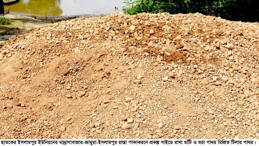 এদিকে, রাস্তা পাকাকরণের জন্য নিম্নমানের সিমেন্ট ও মাটি এবং টিলার মরা পাথর মিশ্রিত লাল পাথর প্রকল্প সাইডে এনে ডাম্পিং করে রাখা হয়েছে। দু’টি অংশে ১ হাজার ২০০ মিটার এবং ৮০০ মিটার রাস্তা পাকাকরণ ও ব্লক নির্মাণের জন্য এসব নির্মাণ সামগ্রী প্রকল্প সাইডে আনা হয়। দু’টি রাস্তায় ১৪ হাজার ব্লক ব্যবহারের কথা প্রকল্প কার্যাদেশে রয়েছে। ইতিমধ্যে ব্লক নির্মাণের কাজ চলমান রয়েছে। কয়েক হাজার ব্লক এরই মধ্যে নির্মাণ করা হয়ে গেছে। নিম্নমানের সামগ্রী দিয়ে নির্মিত ব্লক রাস্তায় ব্যবহার করার আগেই ভেঙে গুড়ো হয়ে যাচ্ছে।