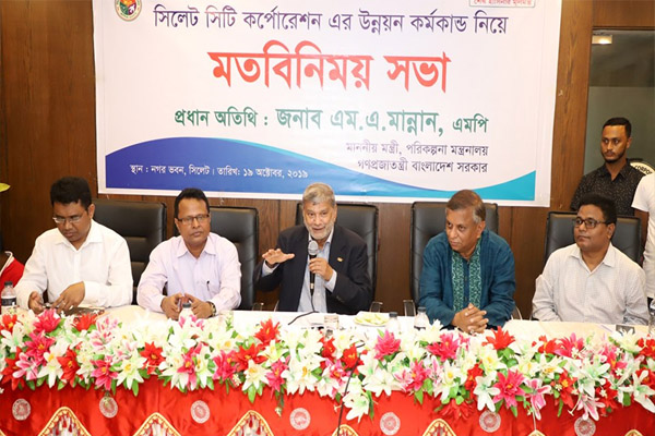 সিলেট সিটি করপোরেশনের মেয়র, কাউন্সিলর ও কর্মকর্তাদের উদ্দেশ্যে পরিকল্পনামন্ত্রী এম এ মান্নান বলেছেন, সরকারের হাতে উন্নয়নের জন্য টাকার কোনো অভাব নেই। জনকল্যাণমুখী প্রকল্প প্রস্তুত করে নিয়ে আসুন তা বাস্তবায়ন করা হবে। সরকার উন্নয়নমূলক কার্যক্রমের জন্য সব সময় প্রস্তুত। সরকারকে বেশি তদবির করার প্রয়োজন হবে না।’