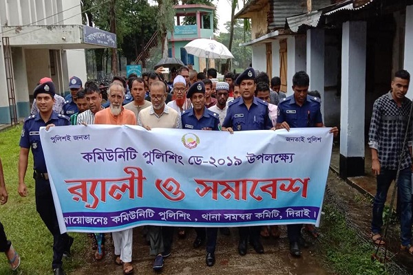 শনিবার সকাল ১১ টায় দিরাই থানা পুলিশের আয়োজনে থানা প্রাঙ্গণ থেকে একটি বর্ণাঢ্য র্যালি বের হয়ে পৌর শহরের বিভিন্ন সড়ক প্রদক্ষিণ শেষে দিরাই থানা পয়েন্টস্থ সেন মার্কেটের সামনে সমাবেশ অনুষ্ঠিত হয়।