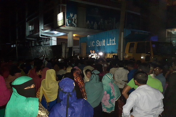 সমঝোতা বৈঠক শেষে জেআইসি স্যুট লিমিটেডের ব্যবস্থাপনা পরিচালক নজরুল ইসলাম মঙ্গলবার সকাল ১০টার মধ্যে বকেয়া বেতন পরিশোধের অঙ্গীকার করলে পরিস্থিতি শান্ত হয়।