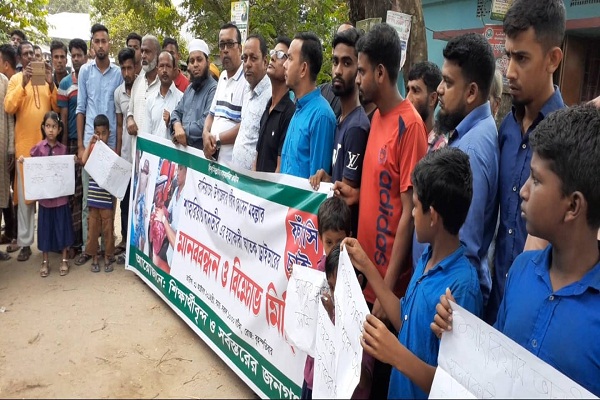 মানববন্ধনে শিক্ষার্থী, সাংবাদিক, জনপ্রতিনিধি ছাড়াও এলাকার সর্বস্তরের মানুষ উপস্থিত ছিলেন।