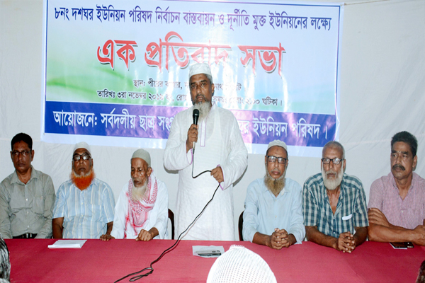 রোববার (৩ নভেম্বর) সন্ধ্যায় দশঘর ইউনিয়নে নির্বাচন বাস্তবায়ন ও দুর্নীতিমুক্ত ইউনিয়ন গড়ার লক্ষ্যে প্রতিবাদ সভা বক্তারা এই অভিযোগ করেন। প্রতিবাদ সভার আয়োজন করে দশঘর ইউনিয়নের সর্বদলীয় ছাত্র সংগ্রাম পরিষদ।