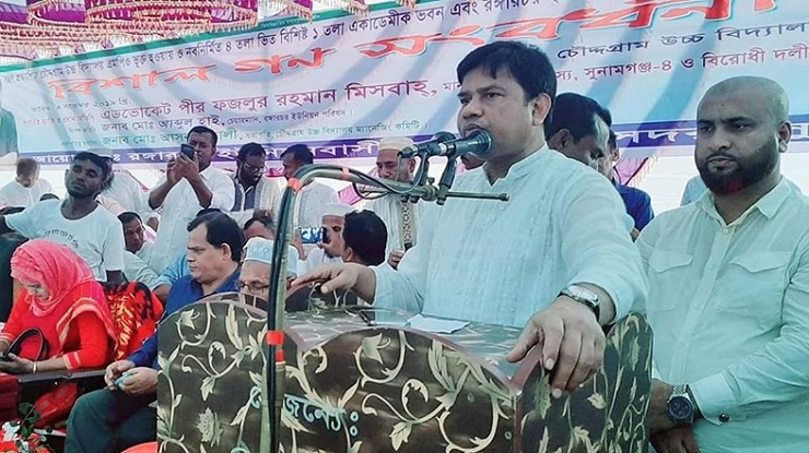 বিরোধী দলীয় হুইপ পীর ফজলুর রহমান মিসবাহ বলেছেন, ‘প্রধানমন্ত্রী শেখ হাসিনা যে শুদ্ধি অভিযান শুরু করছেন, তা প্রত্যন্ত অঞ্চল সুনামগঞ্জ পর্যন্ত আসবে বলে আমরা বিশ্বাস করি। প্রধানমন্ত্রী শেখ হাসিনা শুধু উন্নয়ন নয় শুদ্ধি অভিযানও পরিচালনা করছেন এবং সেখানে কাউকেই ছাড় দেয়া হচ্ছে না। সবাই প্রধানমন্ত্রী শেখ হাসিনার জন্য দোয়া করবেন তিনি এই দেশের উন্নয়নে যেভাবে ভূমিকা রাখছেন বাংলাদেশকে যেভাবে উন্নয়নের মহাসড়কে পরিণত করছেন- তা সত্যি অকল্পনীয়।’