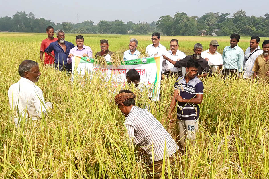 সিলেটের গোলাপগঞ্জে রোপা আমন ধানের আনুষ্ঠানিক নমুনা শস্য কর্তন অনুষ্ঠিত হয়েছে।