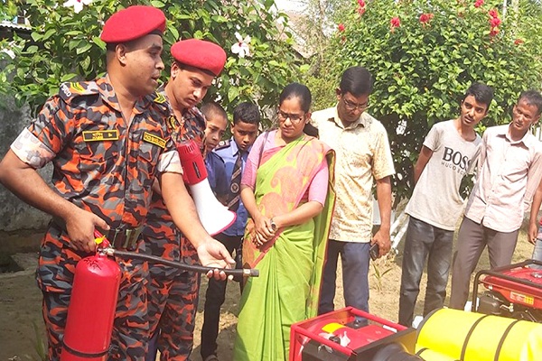 স্টেশন অফিসার রাকিবুল ইসলাম অগ্নিকাণ্ড ও দুর্ঘটনায় উদ্ধার কাজে ব্যবহৃত যন্ত্রাংশ অতিথিদেরকে প্রদর্শন করেন।