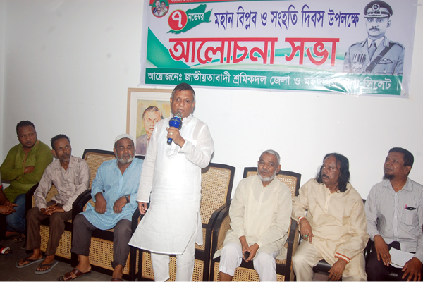 বৃহস্পতিবার (৭ নভেম্বর) বিপ্লব ও সংহতি দিবস উপলক্ষে সিলেট জেলা ও মহানগর শ্রমিক দল আয়োজিত কুমারপাড়াস্থ সিটি মেয়র কার্যালয়ে আলোচনা সভায় প্রধান অতিথির বক্তব্যে উপরোক্ত কথাগুলে বলেন।