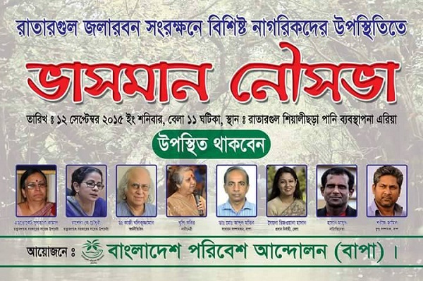 বাংলাদেশ পরিবেশ আন্দোলন (বাপা) এর উদ্যোগে দুইদিনের পৃথক দুই কর্মসূচি ঘোষণা করা হয়েছে। নগরীর চাঁদনীঘাট ও রাতারগুলে এ কর্মসূচিগুলো অনুষ্ঠিত হবে আগামি শুক্র ও শনিবার।