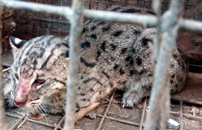 সিলেটের ওসমানীনগরে হাজী আজির উদ্দিন মেম্বারের বাড়িতে ফাঁদে আটকা পড়েছে একটি মেছো বাঘ।