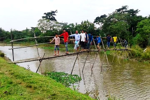 স্থানীয়রা বলছেন, দীর্ঘদিন ধরে নদীর ওপর ব্রিজ নির্মাণের দাবি জানিয়ে আসছেন এলাকাবাসী। কিন্তু এতে কোনো ফল হয়নি। বাধ্য হয়ে তারা চাঁদা তুলে নদীর ওপর বাঁশের সাঁকো তৈরি করেন।