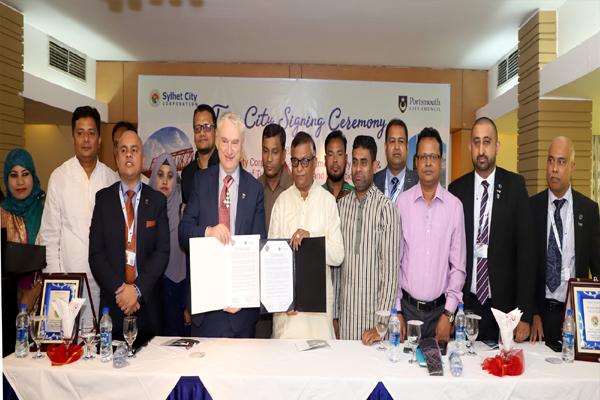 টুইন লিংক চুক্তি স্বাক্ষর অনুষ্ঠানে স্বাক্ষর করেন যুক্তরাজ্যের পোর্টসমাউথ সিটি কাউন্সিলের কাউন্সিল লিডার এন্ড ট্রেড মিশন লিডার জেরাল্ড ভার্নন জ্যাকসন ও সিলেট সিটি করপোরেশনের পক্ষে চুক্তিতে স্বাক্ষর করেন মেয়র আরিফুল হক চৌধুরী।