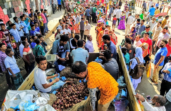এই নিয়ে হুলস্থূলের শুরু। সকাল থেকেই নির্ধারিত তিনটি পয়েন্টে পেঁয়াজের জন্য দীর্ঘ লাইন ধরেন নগরবাসী। রীতিমত আবালবৃদ্ধবনিতা দাঁড়িয়ে যান লাইনে। অশীতিপর বৃদ্ধ, হুইল চেয়ারে করে আসা পঙ্গু- সকলেই দাঁড়ান পেঁয়াজের লাইনে।