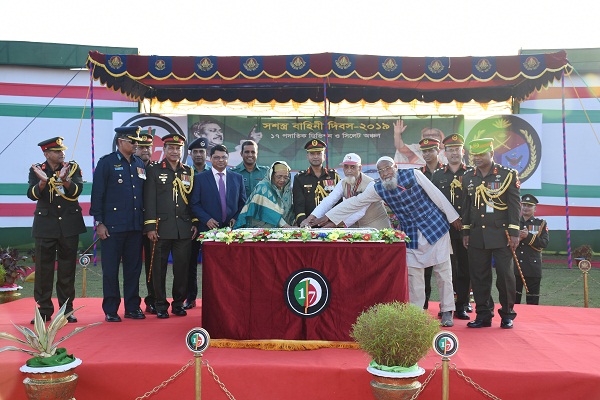 তিনি আরও বলেন, পেশাগত দায়িত্ব পালনের পাশাপাশি সশস্ত্র বহিনী জাতীয় পর্যায়ে যেকোনো দুর্যোগ মোকাবেলা, অবকাঠামো নির্মাণ, আর্তমানবতার সেবা, পাবর্ত্য চট্টগ্রামে সন্ত্রাস দমন, জঙ্গি দমন, বেসামরিক প্রশাসনকে সহায়তা প্রভৃতি কর্মকান্ডের মাধ্যমে দেশের সার্বিক উন্নয়নে অবদান রাখছে।