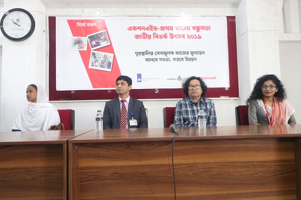 বিষয় নিয়ে সংক্ষিপ্ত উপস্থাপনা করেন একশনএইড বাংলাদেশের প্রোগ্রাম অফিসার নূরে জান্নাত প্রমা। তিনি বলেন, ‘গৃহস্থালির সেবামূলক কাজকে শ্রম হিসেবে স্বীকৃতি দেওয়া উচিত। মূল অর্থনীতিকে সচল রাখতে ‘কেয়ার ইকোনমি’র অবদান আমাদের বুঝতে হবে। এই শ্রমের কোন স্বীকৃতি ও মূল্যায়ন না থাকায় নারীরা প্রতিনিয়ত বৈষম্যের শিকার হচ্ছেন।’