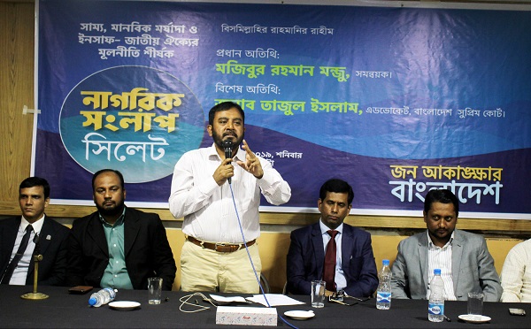 নগরীর একটি অভিজাত হোটেলের কনফারেন্স হলে নাগরিক সংলাপে প্রধান অতিথির বক্তব্য দেন জন আকাঙ্ক্ষার বাংলাদেশ-এর প্রধান সমন্বয়ক মজিবুর রহমান মঞ্জু। প্রধান বক্তার বক্তব্য দেন সুপ্রিম কোর্টের আইনজীবী এডভোকেট তাজুল ইসলাম।