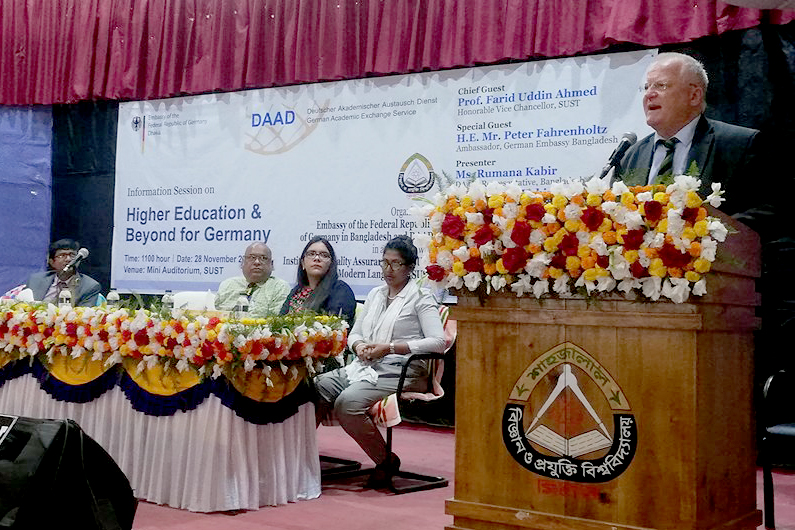 বৃহস্পতিবার (২৮ নভেম্বর) সকালে শাহজালাল বিজ্ঞান ও প্রযুক্তি বিশ্ববিদ্যালয়ের (শাবিপ্রবি) মিনি অডিটোরিয়ামে ‘জার্মানিতে উচ্চশিক্ষা’ বিষয়ক সেমিনারে বিশেষ অতিথির বক্তব্যে তিনি একথা বলেন।