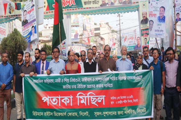 এ পতাকা মিছিলে লিখিত বক্তব্য পাঠ করেন, সুশাসনের জন্য নাগরিক-সুজন এর সিলেট জেলা কমিটির সভাপতি ফারুক মাহমুদ চৌধুরী। পতাকা মিছিলে অংশগ্রহণ করেন হিউম্যান রাইটস ডিফেন্ডার্স ফোরাম সিলেট এর সদস্য সচিব লক্ষ্মীকান্ত সিংহ, সিলেট স্টেশন ক্লাবের সভাপতি অ্যাডভোকেট এমাদ উল্লাহ শহিদুল ইসলাম, সুজন সিলেট জেলা কমিটির সম্পাদক অ্যাডভোকেট শাহ শাহেদা আক্তার, ব্লাস্ট সিলেট এর সমন্বয়কারী অ্যাডভোকেট ইরফানুজ্জামান চৌধুরী, ওয়ার্কাস পার্টি সিলেট জেলা কমিটির সম্পাদক সিকান্দার আলী, বাপা সিলেট জেলা কমিটির সম্পাদক আব্দুল করিম কিম, সাংবাদিক ফয়সল আহমদ বাবলু, বাংলাদেশ জাতীয় মহিলা আইনজীবী সমিতির সিলেট বিভাগীয় প্রধান অ্যাডভোকেট সৈয়দা শিরীন আক্তার, হিউম্যান রাইটস ডিফেন্ডার্স সদস্য নৃপেন্দ্র সিংহ, আলি জেক, মনিহার সিংহ, সিমন তালাং, নোংপকলৈ সিনহা প্রমুখ।
