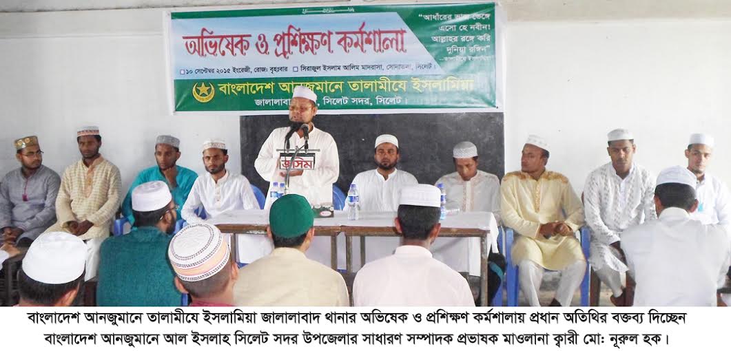 বাংলাদেশ আনজুমানে তালামীযে ইসলামিয়া সিলেট সদর উপজেলার জালালাবাদ থানা শাখার নব গঠিত পরিষদের অভিষেক ও প্রশিক্ষণ কর্মশালা গতকাল (১২ সেপ্টেম্বর) শনিবার দুপুর ১২ ঘটিকায় সিলেট শহরতলী সোনাতলা সিরাজুল ইসলাম আলিম মাদরাসায় সম্পন্ন হয়েছে।