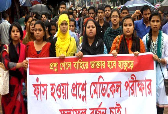 এসময় তারা অভিযোগ করে বলেন, প্রশ্নপত্র ফাঁসের ফলে দেশের হাজার হাজার মেধাবী শিক্ষার্থী তাদের প্রাপ্য অধিকার থেকে বঞ্চিত হয়েছে। টাকা দিয়ে প্রশ্নপত্র কিনে মেধাহীনরা সহজেই ডাক্তারি পড়ার সুযোগ পেয়ে যাবেন।