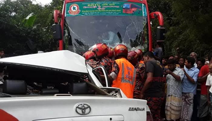 নিহতরা হলেন- আকবর হোসেন (৫৯), বেলাল হোসেন (২৬), বিলকিস বেগম (৪৫) ও প্রাইভেটকার চালক দেলবর। আহত হয়েছেন আয়শা সিদ্দিকা (১৪) ও প্রাইভেটকারের হেলপার। নিহত আকবর হোসেন নরসিংদী জেলার মনোহরদী উপজেলার সমাজসেবা কর্মকর্তা। তাদের গ্রামের বাড়ি কুড়িগ্রামের উলিপুর উপজেলার পাচপীর এলাকায়।
