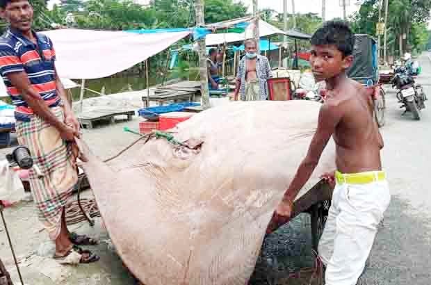 জানা যায় পাঁচ দিন আগে সুন্দরবন সংলগ্ন বঙ্গোপসাগরে জেলেদের জালে বিশালাকৃতির এ মাছটি ধরা পড়ে।