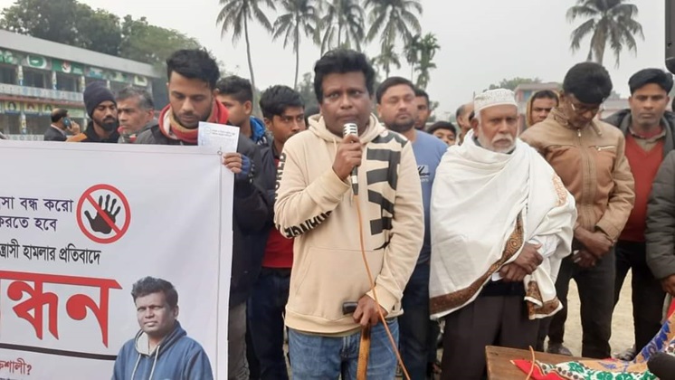 নাট্যকার, পরিচালক শিমুল সরকারের ওপর পৈশাচিক হামলার প্রতিবাদে রাজশাহীর বাঘায় মানববন্ধন কর্মসূচি পালিত হয়েছে।