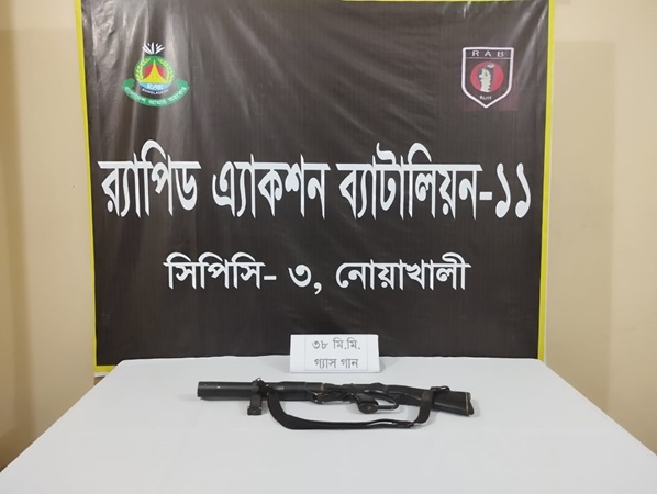 বৃহস্পতিবার দিবাগত রাত পৌনে ২টার দিকে এক প্রেস বিজ্ঞপ্তিতে বিষয়টি নিশ্চিত করেছেন র্যাব-১১, সিপিসি-৩, নোয়াখালী কোম্পানি কমান্ডার সহকারী পুলিশ সুপার মো. গোলাম মোর্শেদ। এর আগে, একই দিন রাতে জেলার বেগমগঞ্জের মজুমদারহাট বাজার থেকে এলাকা থেকে পরিত্যক্ত অবস্থায় গ্যাসগানটি উদ্ধার করা হয়।
