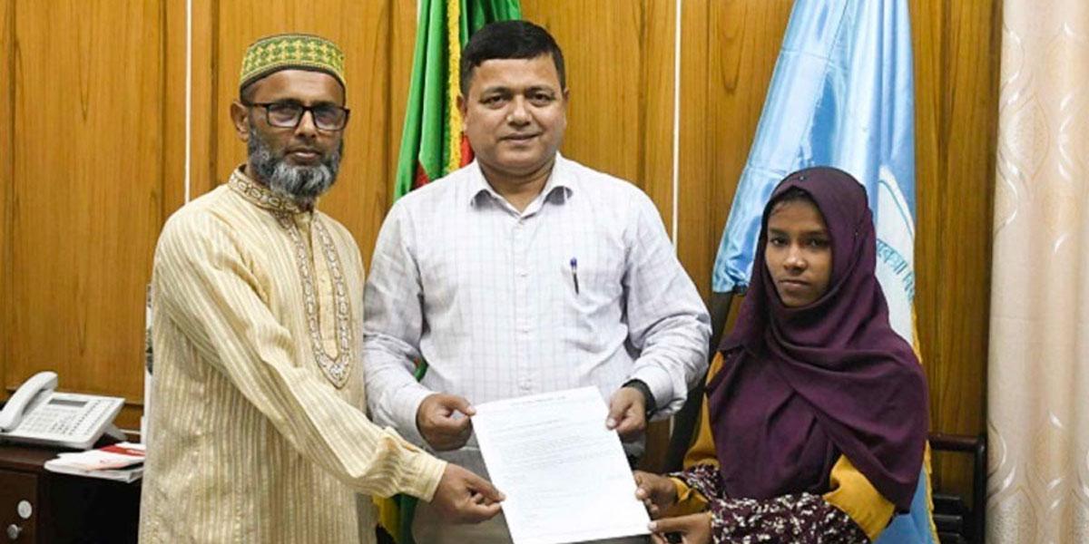 বুধবার (৯ অক্টোবর) দুপুরের দিকে বিশ্ববিদ্যালয়ের উপাচার্য প্রফেসর ড. মো. শওকাত আলী সেমিনার অ্যাটেনডেন্ট পদের জন্য সুমির হাতে নিয়োগপত্র তুলে দেন।