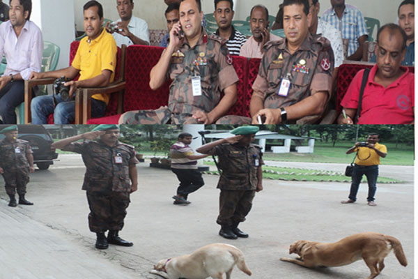 ২৬ বিজিবির যশোর এর অধিনায়ক লে. কর্নেল জাহাঙ্গীর আলমের উপস্থিতিতে তার অনুমতি নিয়ে বিজিবি সদস্যরা এ মহড়া দেয়। প্রথমে ১০ টি মোটর সাইকেল রেখে তার ভিতর একটি মোটর সাইকেলে বিস্ফোরক দ্রব্য রেখে কুকুর দুটিকে ছেড়ে দেয়া হয়। এ সময় কুকুর দুটি মোটর সাইকেলের ভিতর লুকানো জায়গা থেকে এ বিস্ফোরক দ্রব্য খুঁজে বের করে আনে। এরপর একই কায়দায় বিজিবি সদস্যদের পকেট রাখা ফেনসিডিল বের করে আনে। তারপর গাড়ির ভিতর থেকে লুকানো জায়গা থেকে গাজার একটি পোটলা বের করেও নিচে নামিয়ে রাখে।