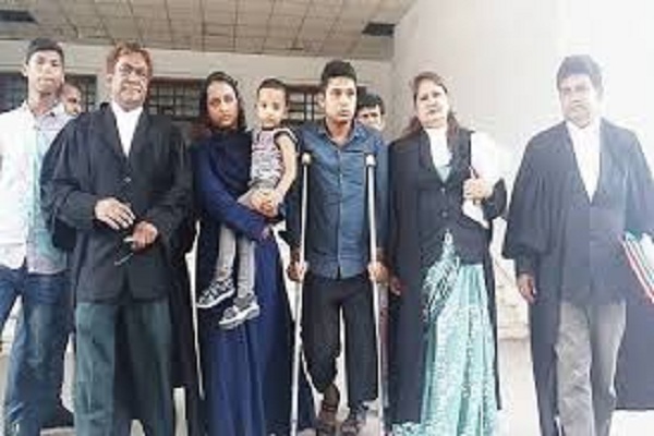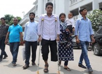 আদালত বলেন, ‘রাসেল এসেছে?’ এ সময় ক্রাচে ভর দিয়ে ডায়েসের সামনে এসে দাঁড়ান রাসেল সরকার। তখন রাসেল সরকারের হাতে চেক তুলে দেওয়া হয়।