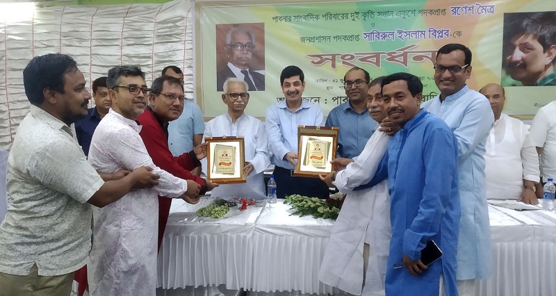 সাংবাদিকতায় একুশে পদকপ্রাপ্ত ভাষাসৈনিক, মহান মুক্তিযুদ্ধের সংগঠক কলামিস্ট রণেশ মৈত্র এবং সুনামগঞ্জ জেলার প্রতিটি ইউনিয়নে মুক্তিযুদ্ধের জাদুঘর ও লাইব্রেরি স্থাপন করে জনপ্রশাসন পদকপ্রাপ্ত মন্ত্রিপরিষদ বিভাগের যুগ্ম সচিব সাবিরুল ইসলাম বিপ্লবকে পাবনায় সংবর্ধনা দেওয়া হয়েছে।