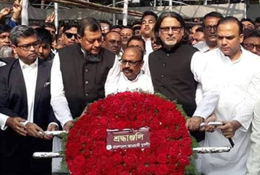 রোববার সকালে ধানমন্ডি ৩২ নম্বর সড়কের সামনে রক্ষিত বঙ্গবন্ধু শেখ মুজিবুর রহমানের প্রতিকৃতিতে ফুল দিয়ে শ্রদ্ধা জানান যুবলীগের নতুন চেয়ারম্যান শেখ ফজলে শামস পরশ এবং সাধারণ সম্পাদক মাইনুল হোসেন খান নিখিল। এ সময়ে যুবলীগের সাবেক সাধারণ সম্পাদক হারুন অর রশিদ উপস্থিত ছিলেন। খবর বাসসের।
