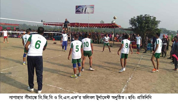 নওগাঁর সাপাহার সীমান্তে বিজিবি ও বিএসএফ’-এর মধ্যে পিস পার্টনার প্রীতি ভলিবল টুর্নামেন্ট অনুষ্ঠিত হয়েছে।