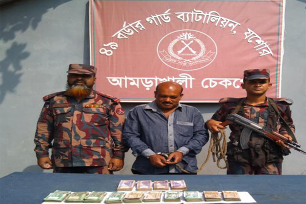 যশোরের শার্শা থেকে হুন্ডির ৯ লাখ টাকাসহ শফিকুল ইসলাম (৪৫) নামে এক পাচারকারীকে আটক করেছে বর্ডার গার্ড (বাংলাদেশ) বিজিবি সদস্যরা।