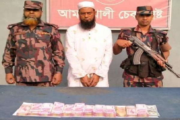 যশোর-বেনাপোল মহাসড়কের আমড়াখালী চেকপোস্ট এলাকা থেকে ২২ লাখ ৪৬ হাজার ভারতীয় রুপি ও ৩ হাজার ইউএস ডলারসহ মোজাম্মেল হোসেন (৪৫) নামে এক পাচারকারীকে আটক করেছেন বর্ডার গার্ড বাংলাদেশের (বিজিবি) সদস্যরা।
