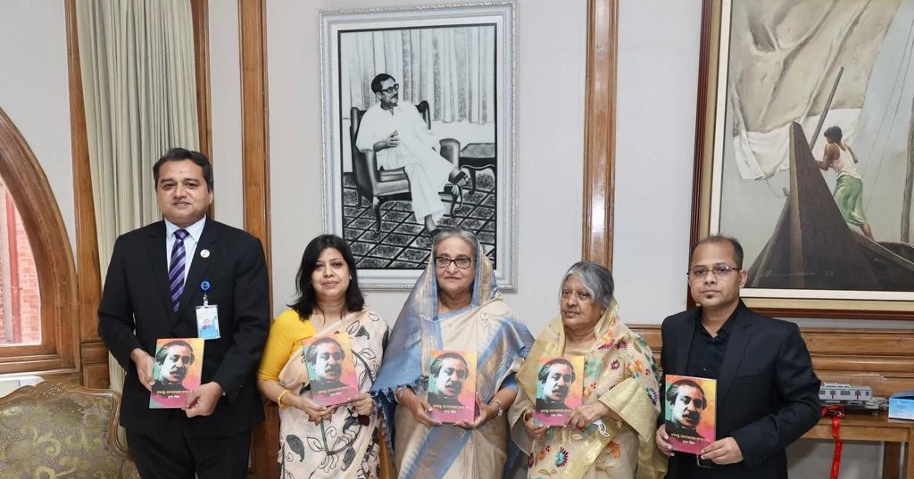 Prime Minister Sheikh Hasina on Sunday unveiled the cover of a book titled "Bangabandhu Bhalobashar Opor Nam" written by Duranta Biplob who recently died in an accident.