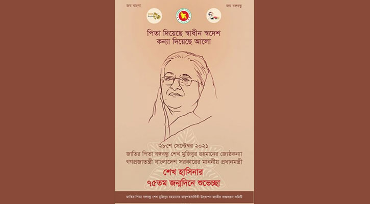 জাতির পিতা বঙ্গবন্ধু শেখ মুজিবুর রহমানের জন্মশতবার্ষিকী উদযাপন জাতীয় বাস্তবায়ন কমিটি বঙ্গবন্ধুর জ্যেষ্ঠ কন্যা প্রধানমন্ত্রী শেখ হাসিনার ৭৫তম জন্মদিন মঙ্গলবার (২৮ সেপ্টেম্বর)। জন্মদিন উপলক্ষে ই-পোস্টার প্রকাশ করেছে ।