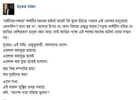 কবি সৈয়দ ওয়ালীর ফেসবুক স্ট্যাটাসের বিস্তারিত-