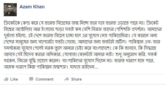 আজম খানের ফেসবুক স্ট্যাটাসের বিস্তারিত-