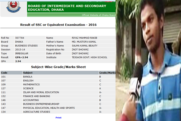 ঢাকা শিক্ষা বোর্ডের বাণিজ্য বিভাগ থেকে পাশ করা রাকিবের ফলাফলেও তাকে অনিয়মিয় বলে উল্লেখ্ করা হয়।