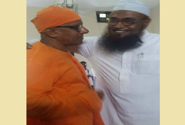 ছবিতে দেখা যায়, ইসলামিক ফাউন্ডেশন, সিলেটের সহকারী পরিচালক মাওলানা শাহ মুহাম্মদ নজরুল ইসলাম ও সিলেট রামকৃষ্ণ মিশনের অধ্যক্ষ স্বামী শ্রী চন্দ্রনাথানন্দজী মহারাজ হাস্যজ্জ্বল মুখে পরপস্পরকে আলিঙ্গণ করছেন।