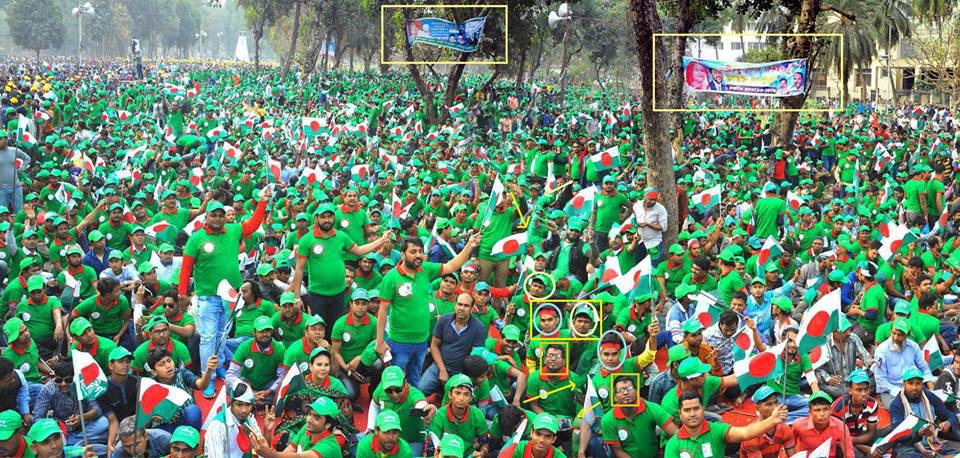 ইংরেজি দৈনিক দ্যা ডেইলি স্টার পত্রিকার বৃহস্পতিবারের প্রিন্ট সংস্করণে সমাবেশের একটি বড় ছবি ছাপা হয়েছে। ছবিটির পর্যালোচনা করে পত্রিকাটি জানিয়েছে তিনজন ব্যক্তির মুখের ছবি দুইবার করে রয়েছে পাশাপাশি। অন্য এক ব্যক্তির হাত দেখা গেলেও মাথা নেই। এছাড়া পিছনে দুইটি গাছের সাথে বাধা একটা ব্যানারে অসামঞ্জস্য দেখা যাচ্ছে।
