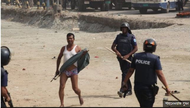 পুলিশ বলছে, শ্রমিকরা যখন পুলিশ সদস্য এবাদতের উপর আক্রমণ করে তখন তিনি নিজেকে রক্ষা করতে অন্য পুলিশ সদস্যদের কাছে ছুটে আসেন।